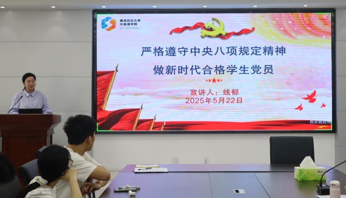 本次党课以“严格遵守中央八项规定精神 做新时代合格学生党员”为主题。线郁首先传达了深入贯彻中央八项规定精神学习教育工作的要求,并向毕业生党员讲解什么是中央八项规定,中央八项规定实施细则,什么是中央八项规定精神等重要内容,并就中央八项规定精神政策、学校相关文件解读进行了政策解读。线郁强调,作为新时代学生党员,必须始终严格遵守中央八项规定精神,切实加强作风建设,坚决杜绝任何形式的违规违纪行为,以实际行动践行新时代学生党员的责任担当。