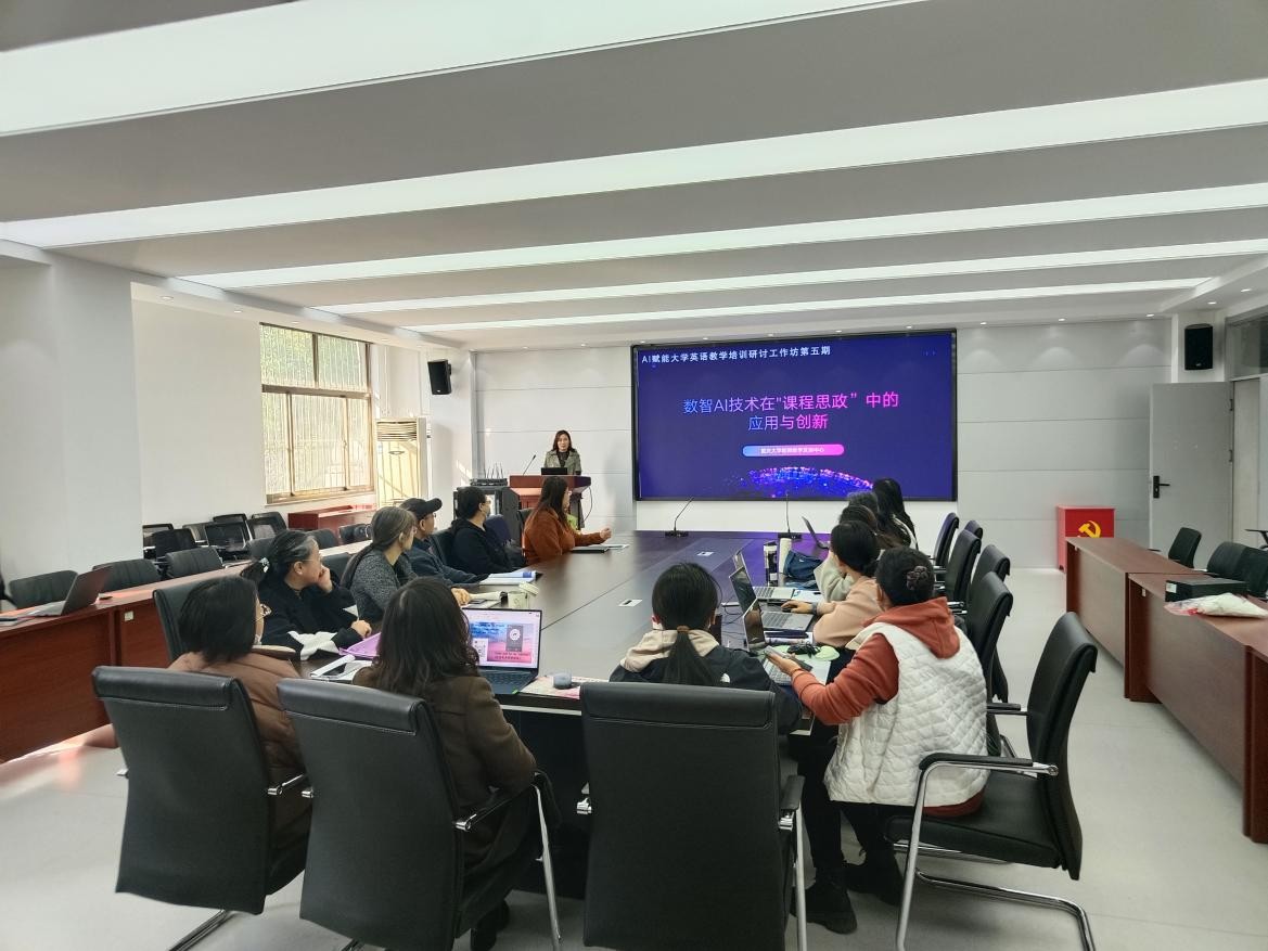 会上,大家先集体学习了重庆大学教师教学研究中心李珩教授的专题讲座“数智AI技术在‘课程思政’中的应用与创新”,了解了基于CO-STAR提示词框架与AI高效协作的方法以及如何将思政元素通过AI融入课程体系的路径;对于AI作为教学协作者和情境创设师,在目标设计、教学评测、活动组织及多模态资源生成中的具体应用有了全新的认识。随后老师们结合自身教学实践,就如何利用AI工具挖掘思政元素、丰富教学素材、创新教学形式、优化课程思政评价等方面内容展开讨论。老师们一致认为:大学英语课堂不仅是语言知识的传授场所,更是跨文化交流与价值引领的重要阵地;在人工智能技术迅猛发展的背景下,探索AI与课程思政深度融合迫在眉睫;AI不仅是高效的教学辅助工具,更能成为实现“润物细无声”式思政教育的催化剂,关键在于教师如何利用好提示词,进行精准设计、有效引导。